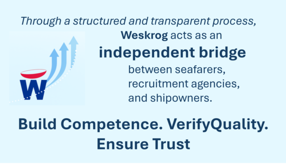 After completing all relevant stages, Weskrog issues a Certificate of Qualification, confirming that the candidate is fully competent and approved for a defined position on a specific type of ship — whether managed by Weskrog or by shipowners who acknowledge Weskrog as a trusted testing authority.